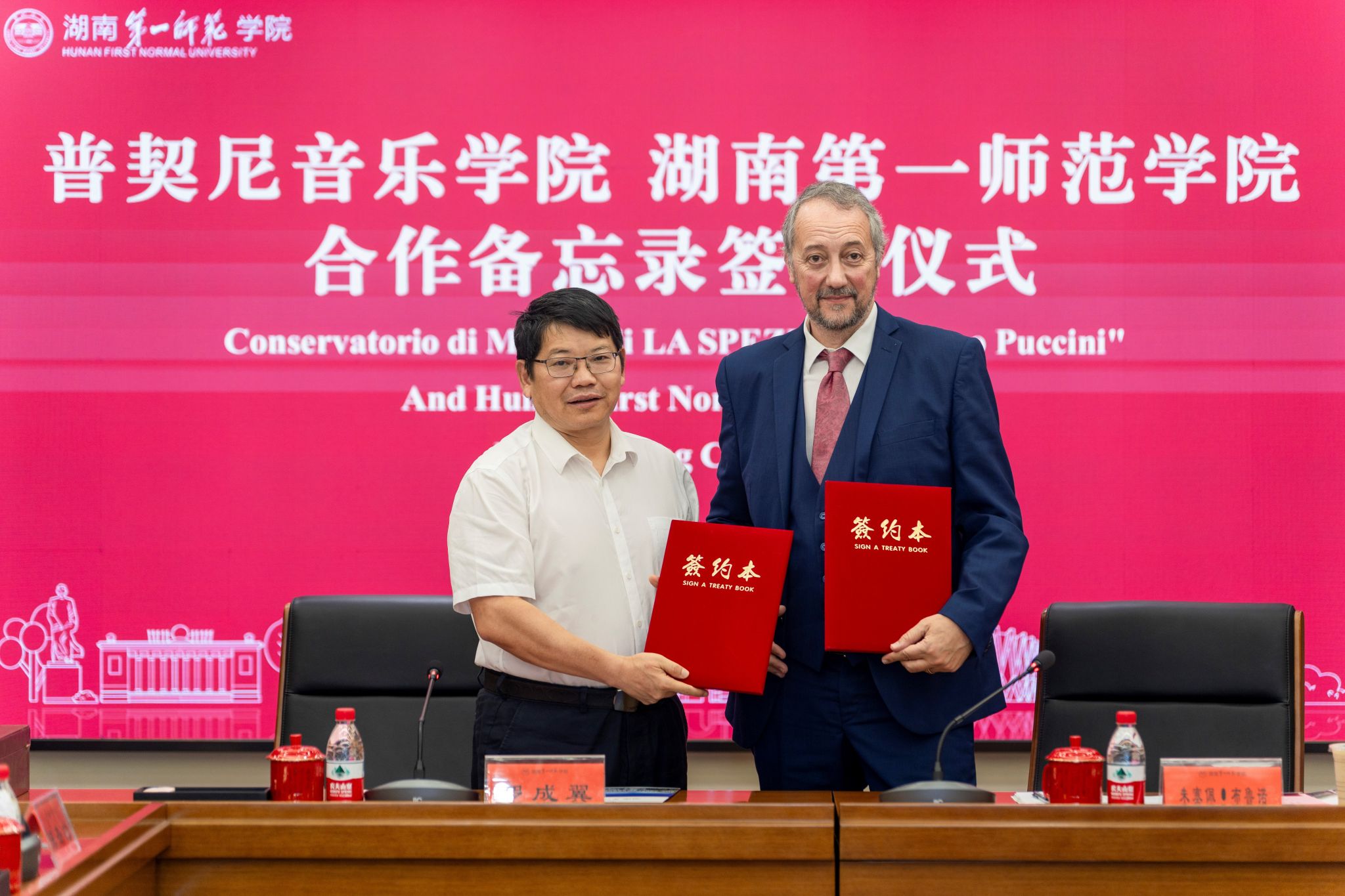 5月28日下午,我校携手意大利普契尼音乐学院正式签署合作备忘录,双方将围绕学术交流、人员互访、联合培养等领域深化合作,为推进两校国际化办学进程迈出重要一步。