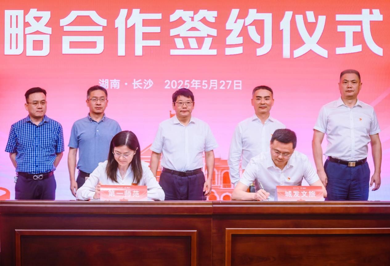 5月27日上午,为深入贯彻落实习近平总书记考察湖南第一师范学院(城南书院校区)时的重要讲话精神,深化校企产教融合,共同推进长沙文化旅游与教育的深度融合与创新发展,我校与长沙城发文旅集团在城南书院校区举行了战略合作签约仪式。校党委书记罗成翼,长沙城发集团党委书记、董事长邹春林等出席活动。双方约定,将在校企联动、项目开发、合作运营、产品协同及整合营销等五个核心领域进一步深化合作。